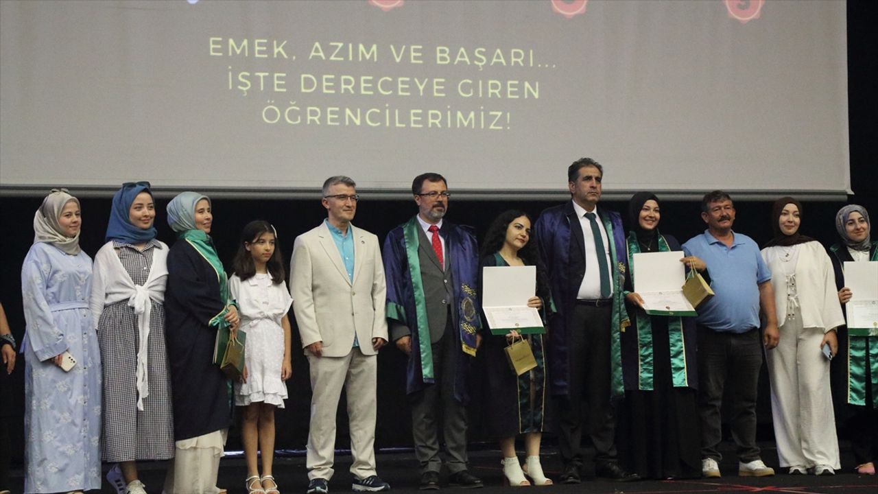 Konuşmaların ardından dereceye giren öğrenciler ödüllendirildi, bölüm birincileri yaş kütüğüne plaket çaktı.