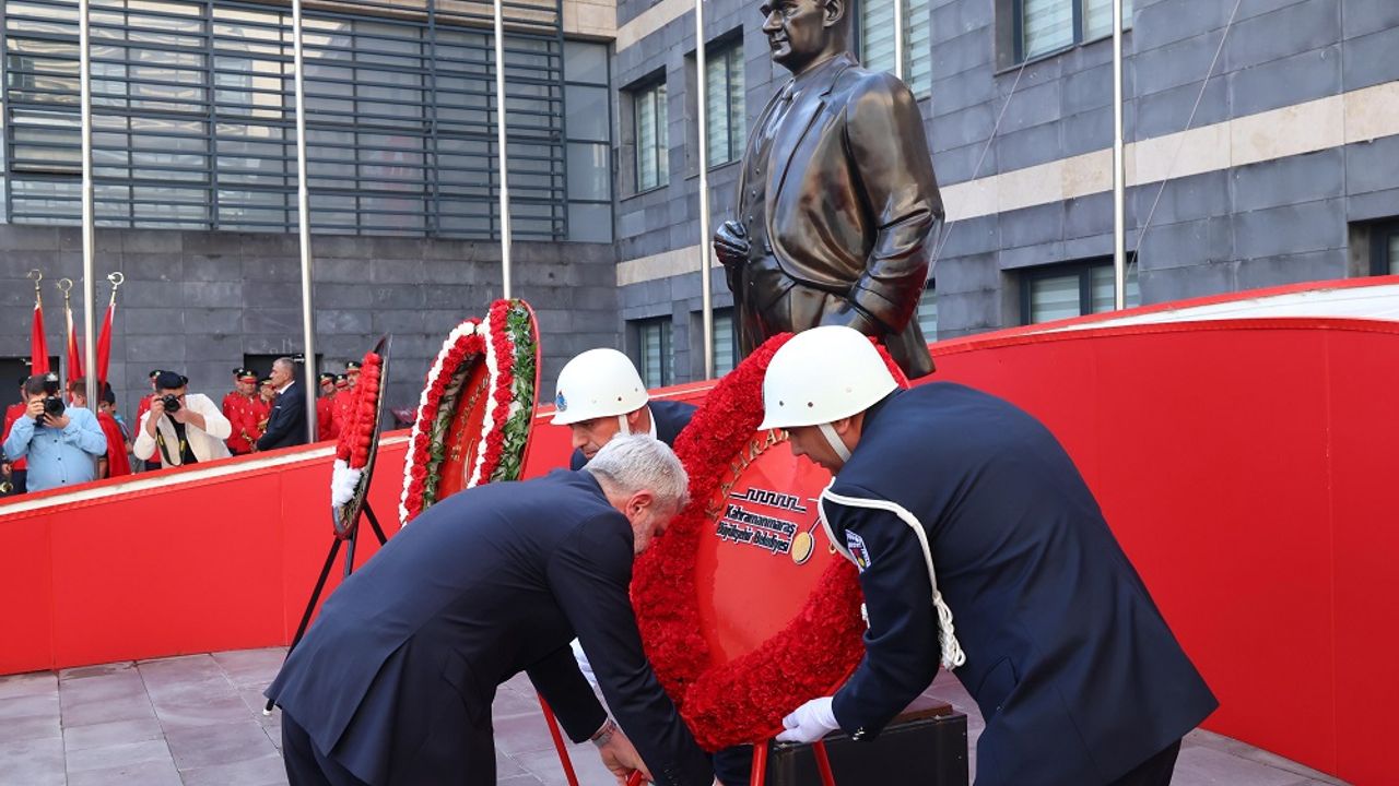 Cumhuriyet’in ilanının 102. yıl dönümü dolayısıyla düzenlenen kutlama etkinlikleri Atatürk Anıtı’na çelenk sunma töreniyle başladı. İl Emniyet Müdürlüğü bahçesinde gerçekleştirilen törende; şehir protokolü, kamu kurum ve kuruluş, siyasi parti ve sivil toplum kuruluşu temsilcileri yer aldı. Saygı duruşu ve İstiklal Marşı’nın okunmasının ardından Vali Mükerrem Ünlüer, Garnizon Komutanı Tümgeneral Ahmet Gülmüş ve Büyükşehir Belediye Başkanı Fırat Görgel, Atatürk Anıtı’na çelenk sundu. Programda katılımcılar, Cumhuriyet’in ilanının 102. yılında Gazi Mustafa Kemal Atatürk ve silah arkadaşlarını rahmet, minnet ve saygıyla andı.