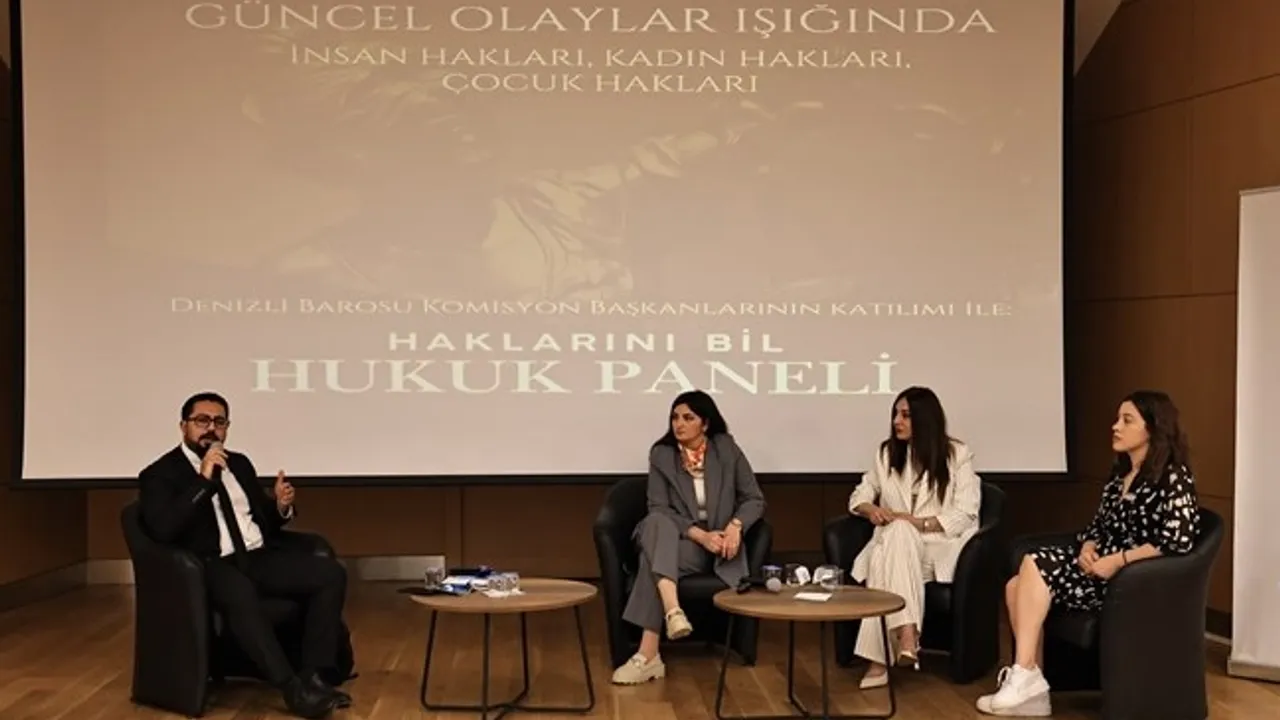 Panele Denizli Baro Başkanı Ufuk Kök, Büyükşehir Belediyesi Kültür ve Sosyal İşler Daire Başkanı Mehmet Selçuk, Kent Konseyi Gençlik Meclisi Başkanı Demir Batur, öğrenciler ve çok sayıda davetli katıldı. Denizli Barosu Kadın Komisyonu Başkanı Av. Merve Öğüt, İnsan Hakları Komisyonu Başkanı Av. Özlem Barıner, Çocuk Hakları Komisyonu Başkanı Av. Nazlı Yaşatürk’ün konuşmacı olduğu Pamukkale Üniversitesi'nden Dr. Öğr. Üyesi Kahan Onur Arslan’ın moderatör olduğu panelde güncel olaylar ışığında insan hakları, kadın hakları ve çocuk hakları konuları kapsamlı bir şekilde ele alındı. Hukukun farklı alanlarında uzmanlaşmış konuşmacılar, katılımcılara hem teorik hem de pratik bilgiler sundu.