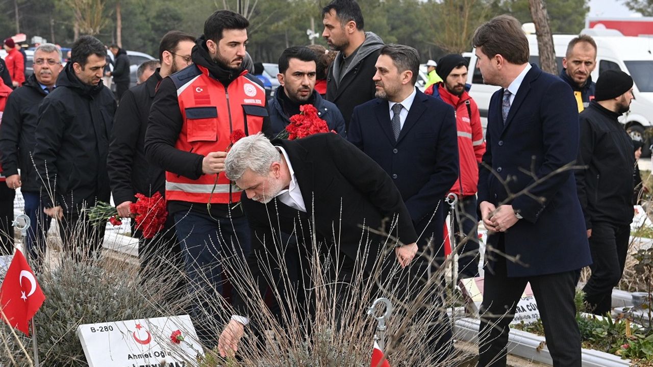 Büyükşehir Belediye Başkanı Fırat Görgel, “6 Şubat 2023’te yaşadığımız felaket, sadece Kahramanmaraş’ımızın değil, tüm ülkemizin yüreğini dağladı. On binlerce canımızı toprağa verdik, binlerce ailemiz tarifsiz acılar yaşadı. Bugün burada, deprem şehitlerimizin kabirleri başında bir kez daha onları rahmetle anıyor, dualarla yad ediyoruz. Aradan üç yıl geçmiş olsa da kaybettiklerimizin yokluğu her gün kalbimizde hissediliyor. Depremde hayatını kaybeden tüm kardeşlerimizi rahmetle anıyor, ailelerine bir kez daha sabır ve baş sağlığı diliyorum. Rabbim böyle acıları bir daha milletimize yaşatmasın. Deprem şehitlerimizin hatırası daima kalplerimizde yaşayacak” dedi.