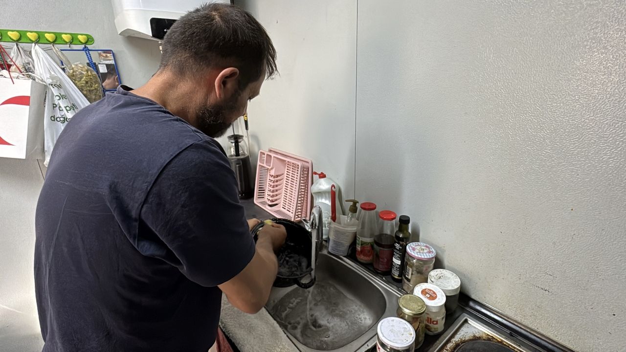 Antakya'daki bir konteyner kentte geçici olarak ikamet eden Erdem, yemeklerinden çamaşırlarına, ödevlerinden temizliklerine kadar her şeyiyle ilgilendiği 4 evladına hem annelik hem babalık yapıyor.