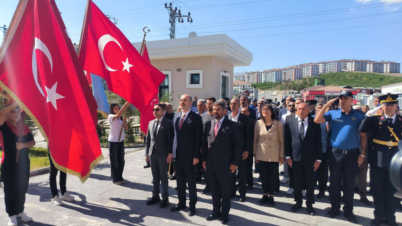 Hükümet Konağı önünde gerçekleştirilen törende Atatürk Anıtı'na çelenk sunuldu.