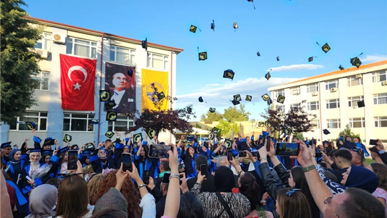 Trakya Üniversitesi Keşan Meslek Yüksekokulu’nda 120 öğrenci, 2024/2025 Akademik Yılı Mezuniyet Töreni’nde keplerini havaya fırlatarak mezun olmanın sevincini yaşadı.Erdoğan DEMİR / EDİRNE (İGFA) - Trakya Üniversitesi Keşan Meslek Yüksekokulu’nun 2024/2025 Akademik Yılı Mezuniyet Töreni, okul bahçesinde düzenlendi.