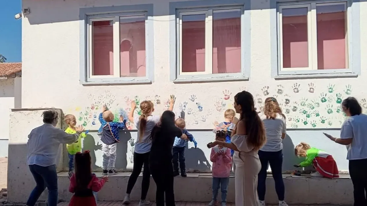Çocukların heyecanla katıldığı etkinlikte ortaya çıkan renkli duvar izleri, hem miniklere keyifli anlar yaşattı hem de velilerin bu sürece aktif katılımını sağladı.
