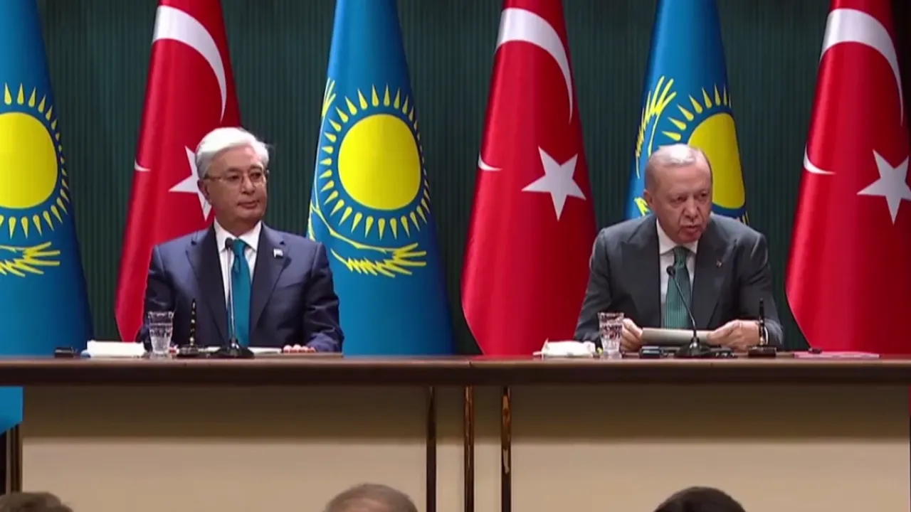 Cumhurbaşkanı Erdoğan, Kazakistan Cumhurbaşkanı Tokayev ile düzenlediği ortak basın toplantısında, Kazak petrolünün Türkiye üzerinden dünya pazarlarına ulaştırılmasını, savunma sanayii iş birliğini ve Filistin’de İsrail’in soykırım politikalarını ele aldı. Ortak bildiride, Kıbrıs Türklerinin eşit ve özden gelen haklarına saygı duyulmasını özellikle istişare edildi.ANKARA (İGFA) - Cumhurbaşkanı Recep Tayyip Erdoğan, Kazakistan Cumhurbaşkanı Kasım Cömert Tokayev ile Anlaşmaların İmza Töreni ve Ortak Basın Toplantısı’nda önemli konulara değindi.