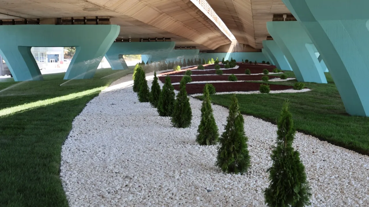 “Piramit Mazı”, “Top Şimşir”, “Phormium Tenax” ve “Loropetalum” gibi bitkilerle alan süslendi.