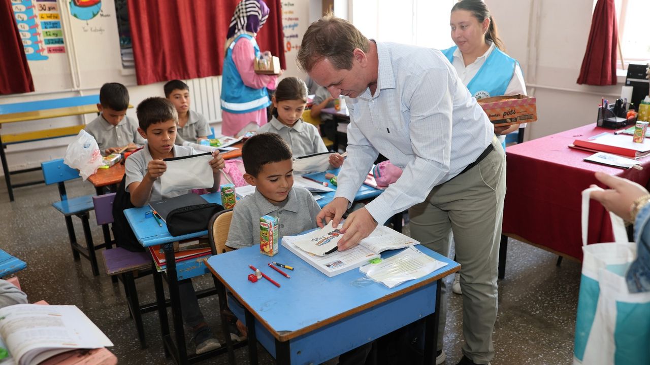 MERSİN (AA) - Gülnar Belediye Başkanı Fatih Önge, ilkokul ve ortaokul öğrencilerine kırtasiye seti dağıttı.