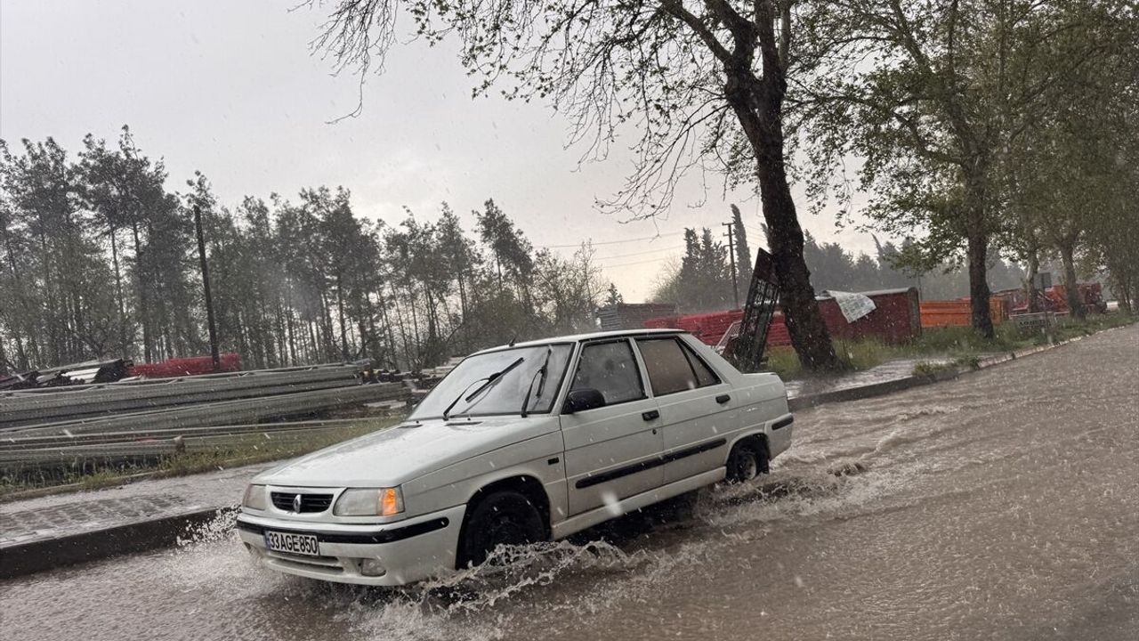 Yağmur ve dolunun etkili olduğu kentte, Batı Çevre Yolu'nda meydana gelen su birikintileri nedeniyle çok sayıda araç mahsur kaldı.