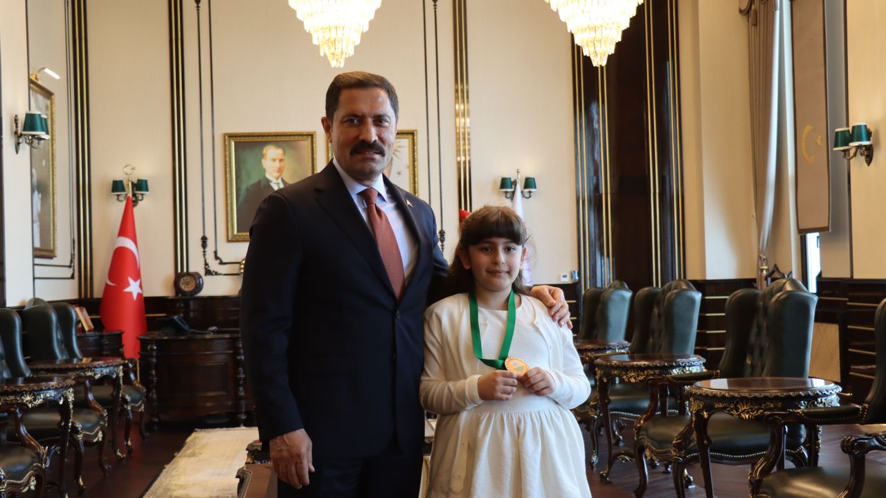 HATAY (AA) - Hatay Valisi Mustafa Masatlı, şehit polis memuru Emirhan Şimşek'in NextGen Uluslararası İngilizce Olimpiyatı'nda dünya 3'üncüsü olan 9 yaşındaki kızı Ömür Şimşek'i makamında kabul etti.