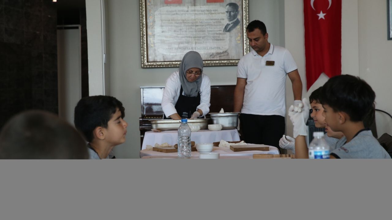 Kömbe Atölyesi Projesi kapsamında haftanın belirli günlerinde çeşitli okullardan gruplar halinde Hatay Gastronomi Evi'ne gelen öğrenciler, atölyede uzman şefler eşliğinde kömbe hazırladı.