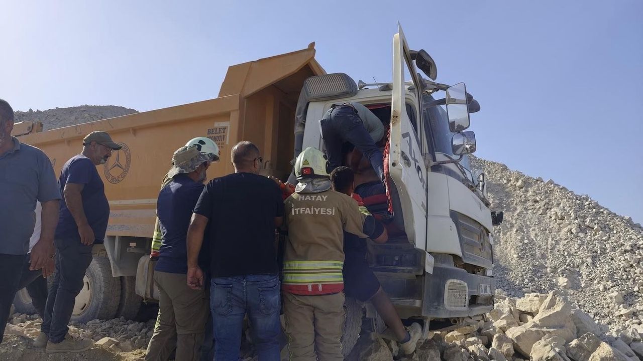 HATAY (AA) - Hatay'ın İskenderun ilçesinde devrilen hafriyat kamyonunun sürücüsü yaralandı.