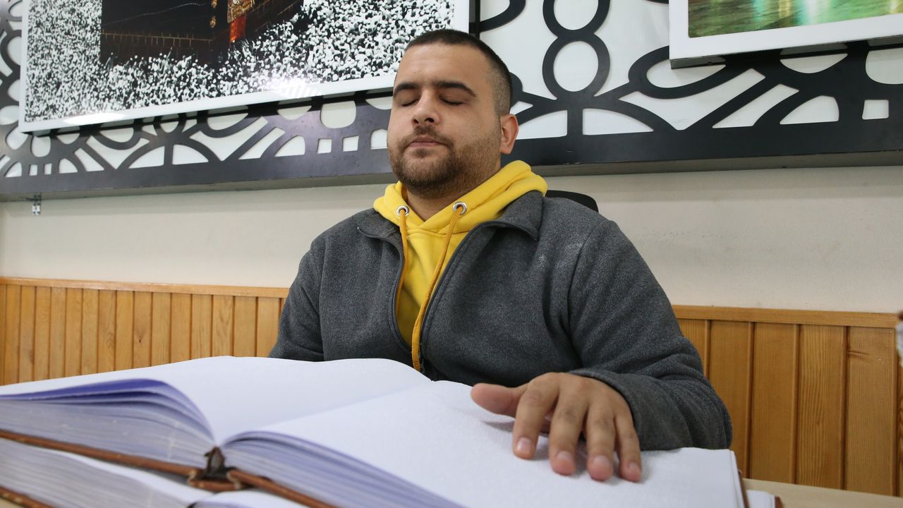 HATAY (AA) - ALİ KEMAL ZERENLİ - Hatay'ın Belen ilçesinde kabartma yazıyla Kur'an-ı Kerim'i ezberleyip hafız olan 26 yaşındaki görme engelli Abdulkadir Akdağ, göreve başladığı kursta çocuklara kutsal kitabı öğretiyor.