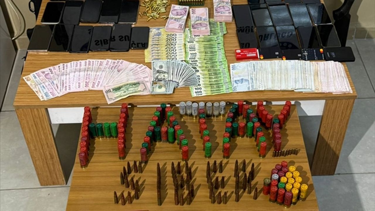 Şüphelilerin ev ve iş yerlerinde yapılan aramada 4 ruhsatsız tabanca, 2 ruhsatsız pompalı tüfek, 364 fişek, 1,19 gram uyuşturucu, 32 cep telefonu, 25 sim kart, 5 bilgisayar, 1 tablet, 1 hard disk, 121 bin 650 lira, 7 bin 500 riyal, 3 bin avro, 6 bin 550 dolar ve yaklaşık 3 milyon 100 bin lira değerinde ziynet eşyası ele geçirildi.