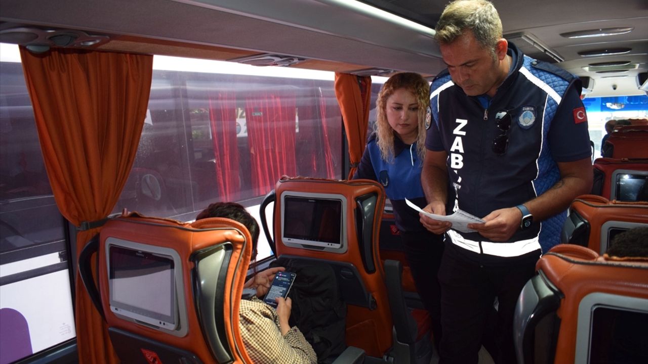Büyükşehir Belediyesi Zabıta Dairesi Başkanlığı ekipleri, bayram dolayısıyla hareketliliğin arttığı terminalde otobüsleri kontrol etti.