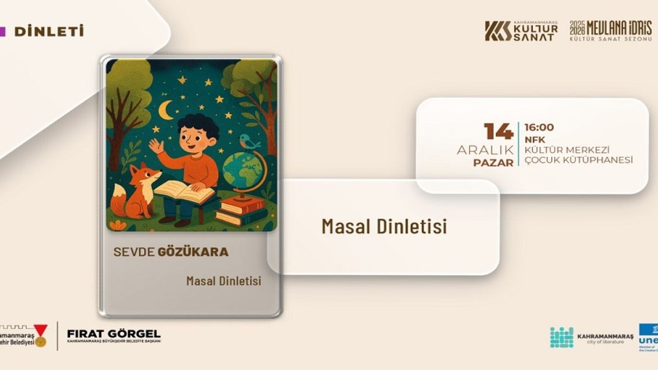 UNESCO’nun Türkiye’deki ilk “Edebiyat Şehri” unvanına sahip Kahramanmaraş, bu kimliği güçlendiren kültür sanat etkinliklerine her yaş grubundan vatandaşları dâhil etmeye devam ediyor. Büyükşehir Belediyesi, Mevlâna İdris Kültür Sanat Sezonu kapsamında özellikle çocuklara yönelik etkinliklere ayrı bir önem vererek miniklerin kültür ve sanatla iç içe büyümesini hedefliyor. Bu kapsamda, 14 Aralık Pazar günü çocuklar için özel bir masal dinletisi programı düzenlenecek. Necip Fazıl Kısakürek Kültür Merkezi Çocuk Kütüphanesi’nde gerçekleştirilecek etkinlikte, çocuk edebiyatının sevilen isimlerinden Sevde Gözükara, minik okurlarla bir araya gelecek. Saat 16.00’da başlayacak programda Gözükara, birbirinden eğlenceli, öğretici ve hayal gücünü besleyen masalları çocuklarla paylaşacak. Etkinlik çocukların hem keyifli vakit geçirmesine hem de okuma sevgisini pekiştirmesine katkı sağlayacak. Büyükşehir Belediyesi tarafından yapılan açıklamada, tüm çocuklar bu özel buluşmaya davet edildi.