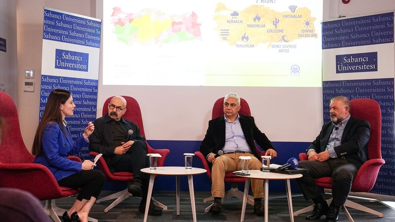 Sabancı Üniversitesi Girişimcilik ve Kuluçka Merkezi'nde (SUCOOL) gerçekleşen, AA Yeşilhat muhabiri Biriz Özbakır'ın moderatörlüğünü yaptığı etkinlikte akademisyenler ve öğrenciler, iklim krizinin tarım üzerinde yarattığı baskı, tarım politikaları ve iklim değişikliğiyle mücadelede teknolojinin rolü değerlendirildi.
