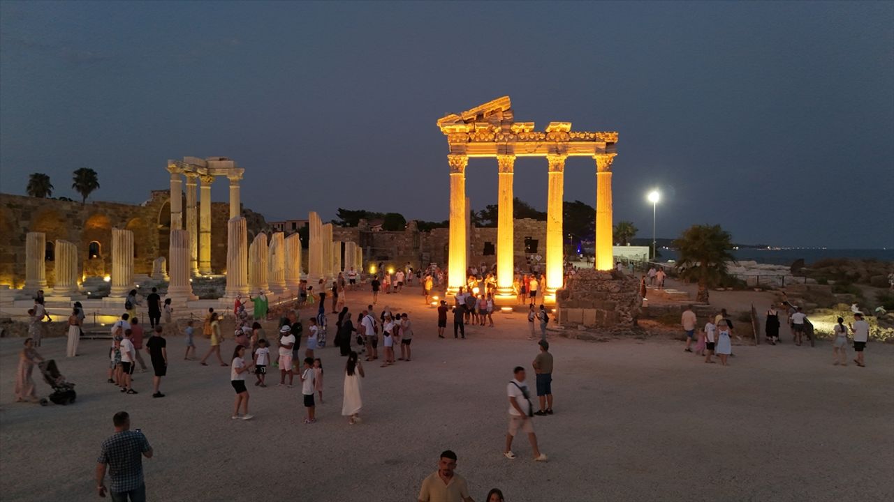 ANTALYA (AA) - HATİCE ÖZDEMİR TOSUN - MUSTAFA KARABIYIK - Geç Bronz Çağı, Helenistik, Roma ve Bizans dönemlerine ait izler taşıyan Antalya'nın Manavgat ilçesindeki Side Antik Kenti, "Geleceğe Miras Projesi" ile gece de ziyaretçilerini ağırlıyor.