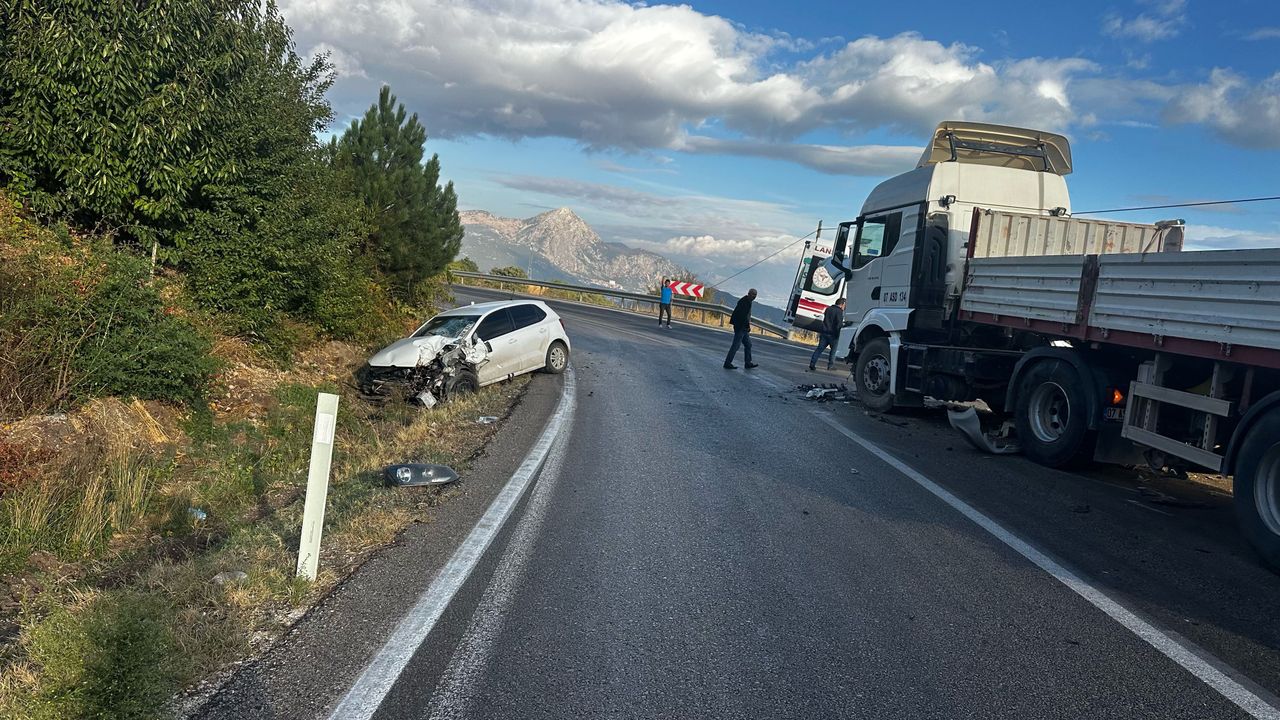 ISPARTA (AA) - Isparta'nın Aksu ilçesinde otomobil ile tırın çarpıştığı kazada 1 kişi yaralandı.