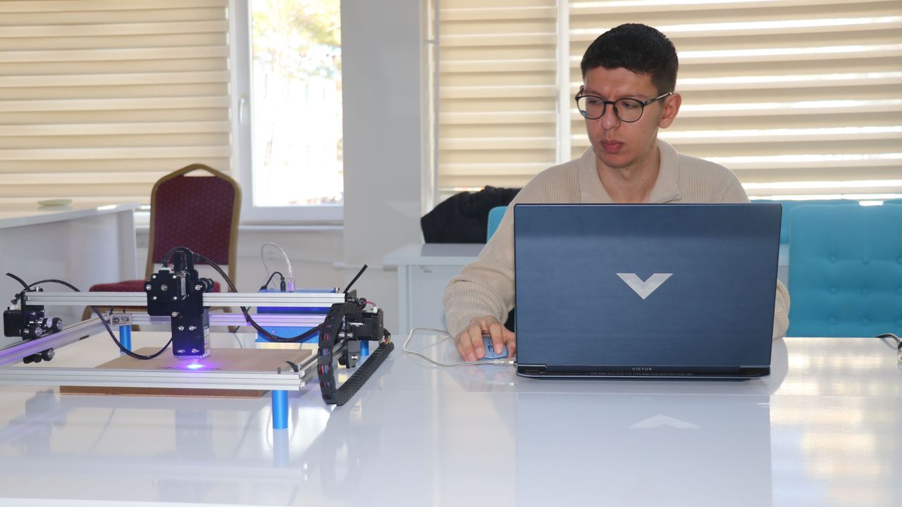 ISPARTA (AA) - YALÇIN ÇELEN - Isparta Uygulamalı Bilimler Üniversitesi Organize Sanayi Meslek Yüksekokulu Mekatronik Bölümü 2. sınıf öğrencisi Edip Başol, yerli imkanlarla farklı yüzeyler üzerinde yüksek hassasiyetli işlem yapabilen lazer kesim ve kazıma makinesi geliştirdi.