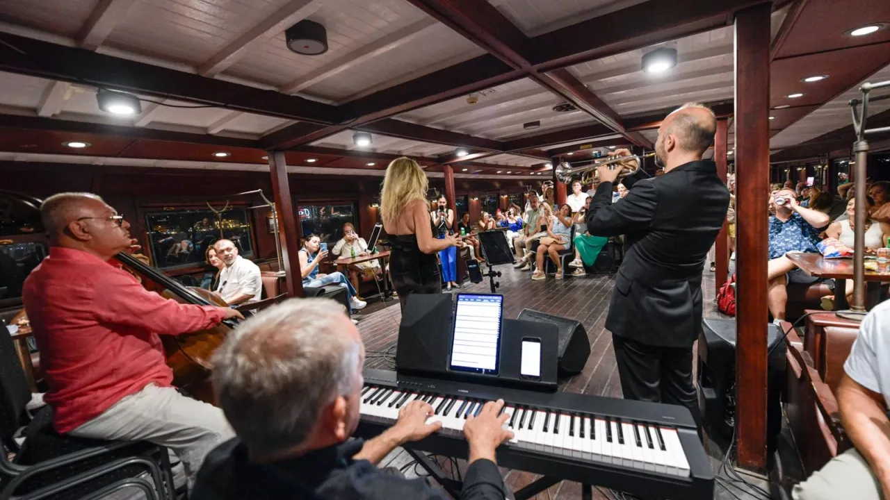 Konser sırasında İzmir Körfezi turu yapan tarihi vapur, dinleyicilere unutulmaz bir akşam yaşattı.