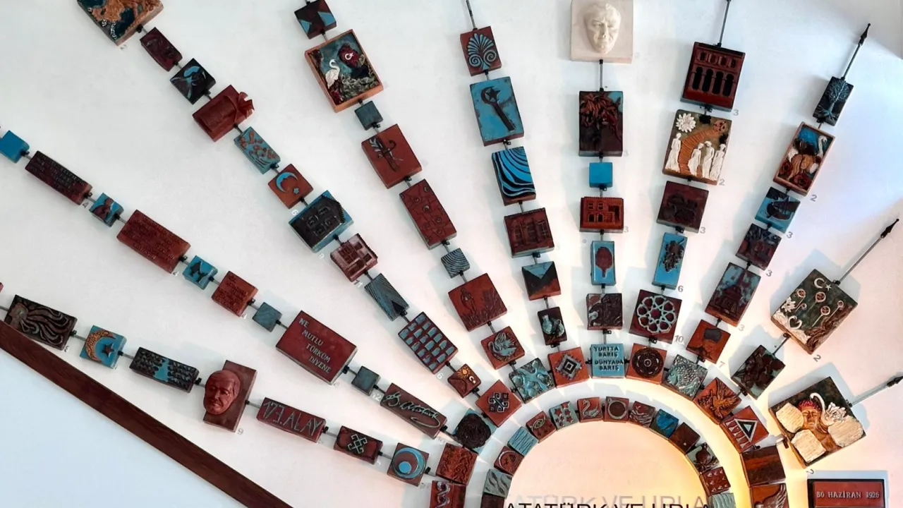 İzmir'de Urla Belediyesi ve Bizce Seramik Atölyesi işbirliğiyle hazırlanan “Atatürk ve Urla” temalı seramik pano, Atatürk’ün Urla’ya gelişinin 99. yılında törenle açıldı.İZMİR (İGFA) - Urla, kültür-sanat dünyasına anlamlı bir eser kazandırdı.