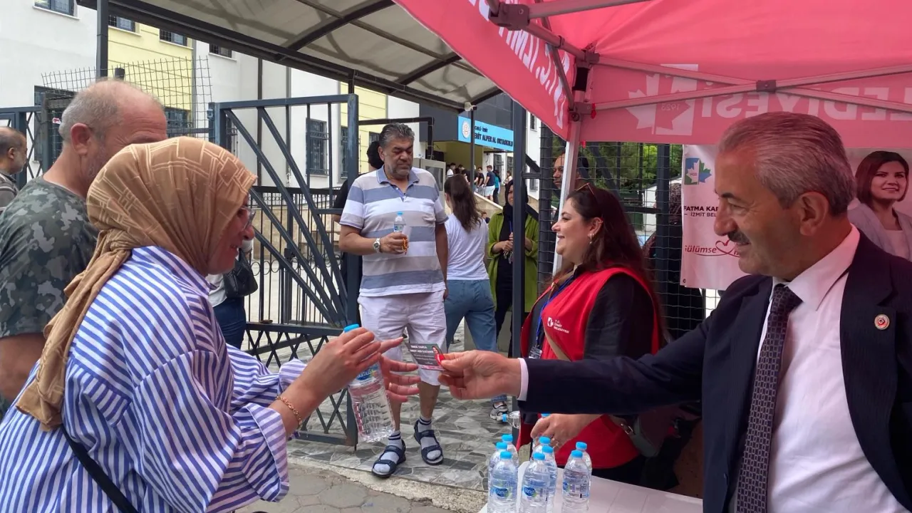 Başkan yardımcıları ve meclis üyeleri, sınava giren adaylara su ikramında bulunarak hem sınav öncesinde moral verdi hem de başarılar diledi.