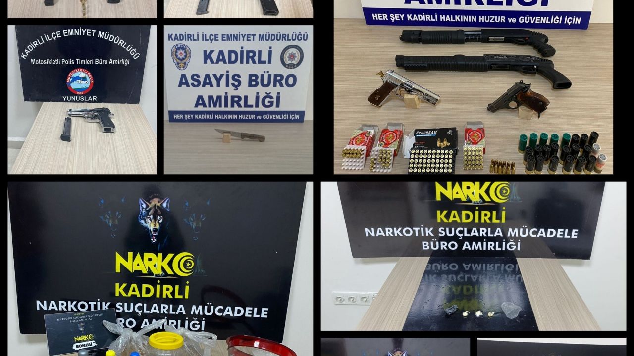 OSMANİYE (AA) - Osmaniye'nin Kadirli ilçesinde narkotik ve asayiş uygulamalarında gözaltına alınan 15 şüpheliden 9'u tutuklandı.