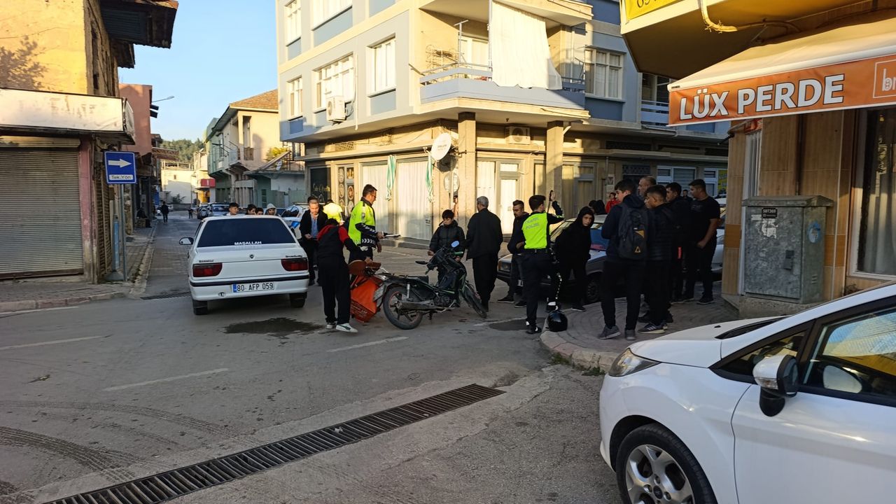 Y. E. D. idaresindeki 80 ABZ 727 plakalı motosiklet, Bağ Mahallesi Turgut Özal Caddesi'nde D.K. yönetimindeki 80 AFP 059 plakalı otomobille çarpıştı.