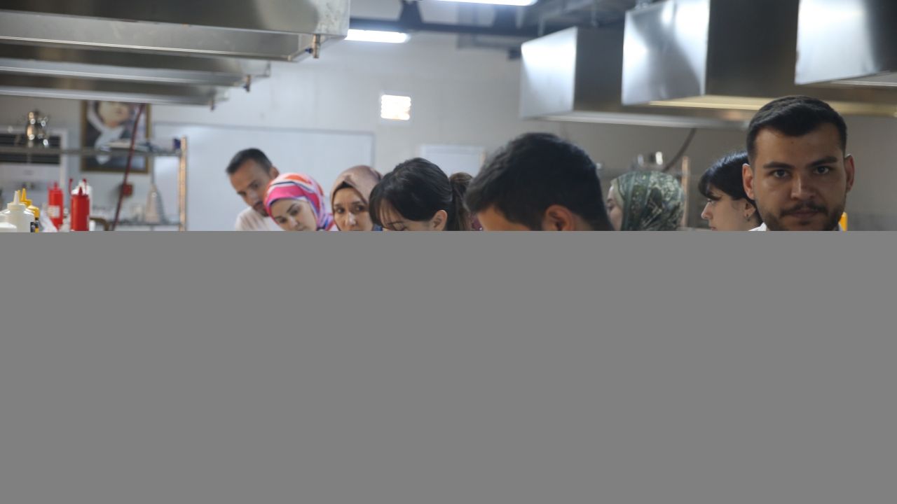 Üniversitenin uygulama mutfağında düzenlenen etkinlikte öğrenciler, Çerkez yemekleri hakkında bilgi aldı.