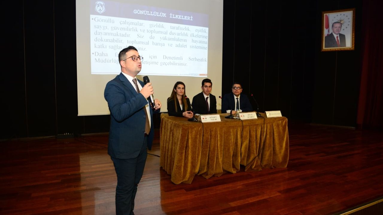 Denetimli serbestlik personelleri tarafından sistemin işleyişi, uygulama örnekleri ve toplumsal faydalarının anlatıldığı panelde, katılımcılara, suç işlemiş bireylerin topluma yeniden kazandırılmasında sistemin rolü, farkındalık çalışmaları ve iyileştirme faaliyetleri anlatıldı.