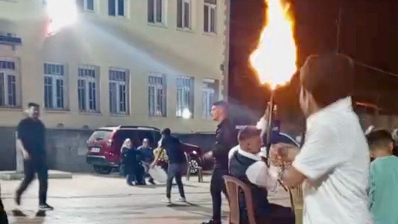 Kahramanmaraş (SHA)- Kahramanmaraş’ta bir düğün töreninde yanı başındaki çocuklara rağmen havaya rastgele ateş açan maganda yakalandı.