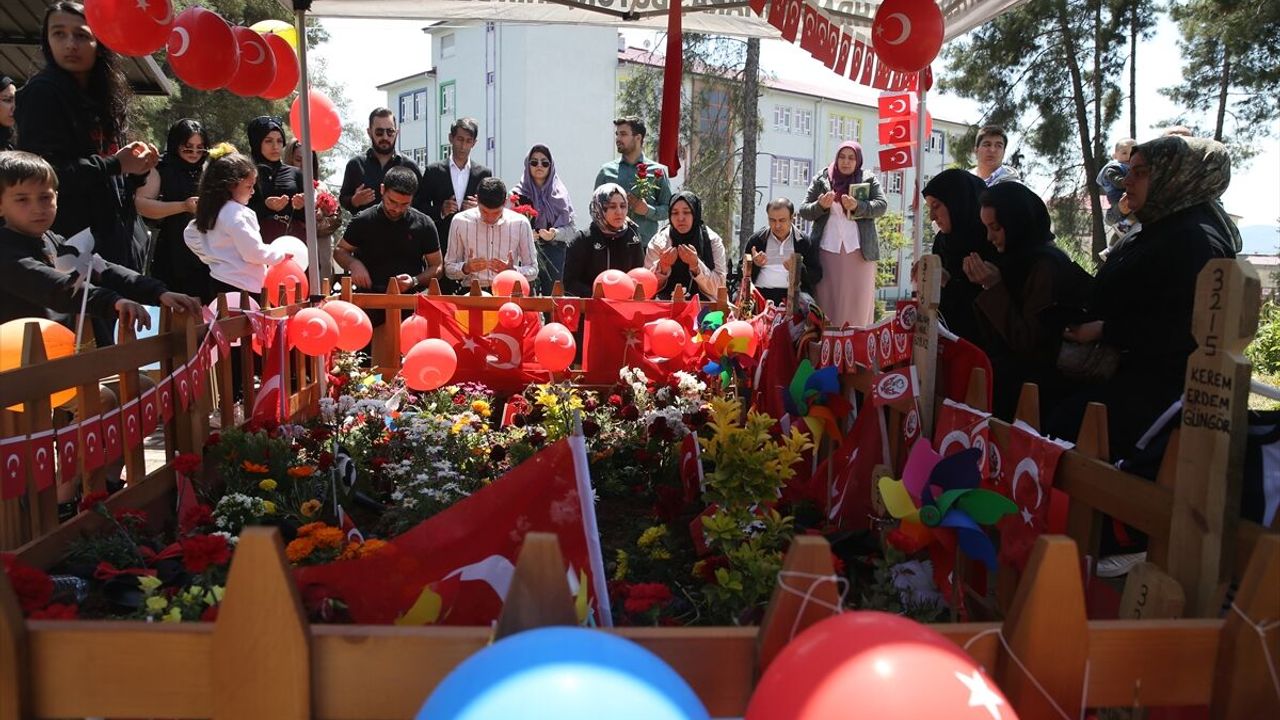 Aileler, vatandaşlar ve öğrenci grupları, 23 Nisan kapsamında silahlı saldırıda hayatını kaybeden öğrencilerin mezarlarına ziyarette bulundu.