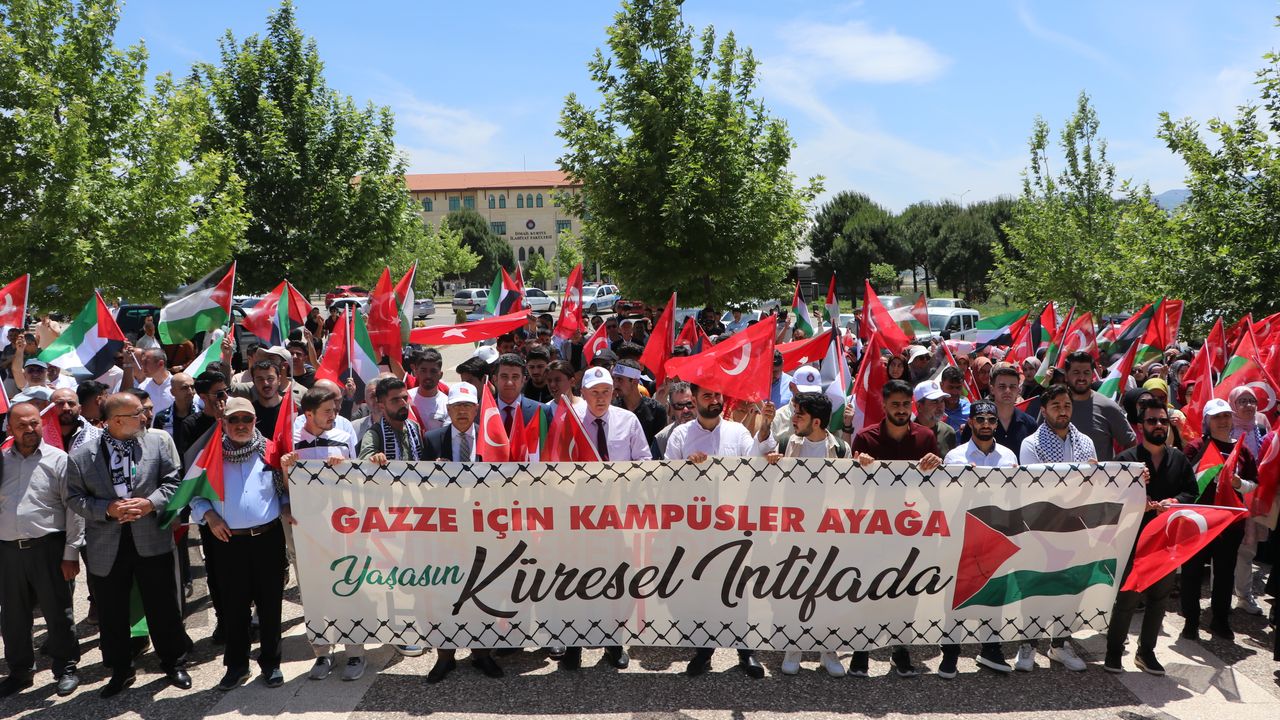 KAHRAMANMARAŞ (AA) - Kahramanmaraş Sütçü İmam Üniversitesi (KSÜ) öğrencileri, İsrail'in Gazze’ye yönelik saldırılarını protesto etmek ve Filistin'e destek vermek amacıyla yürüyüş düzenledi.