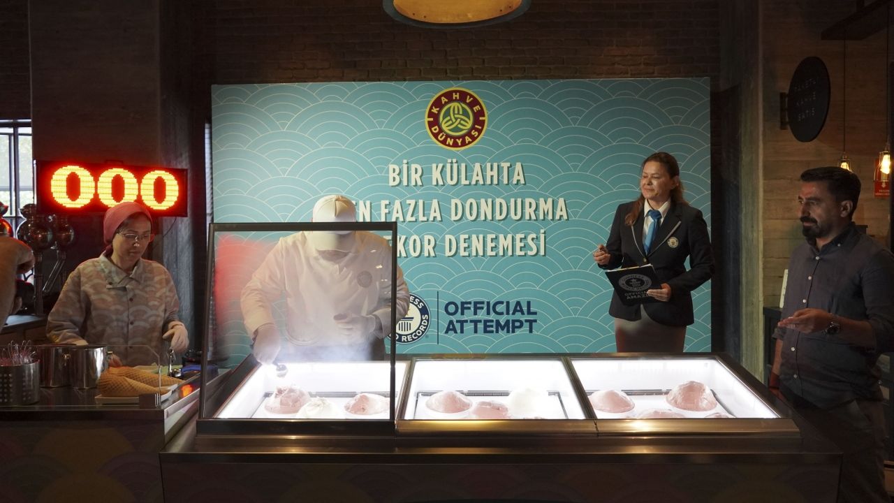 Guinness World Records Türkiye Hakemi ve Temsilcisi Şeyda Subaşı Gemici de Kahve Dünyası ve Gökhan Şahin'in, "Bir külah üzerinde dengede duran en fazla dondurma topu" rekor denemesini gerçekleştirdiğini söyledi.