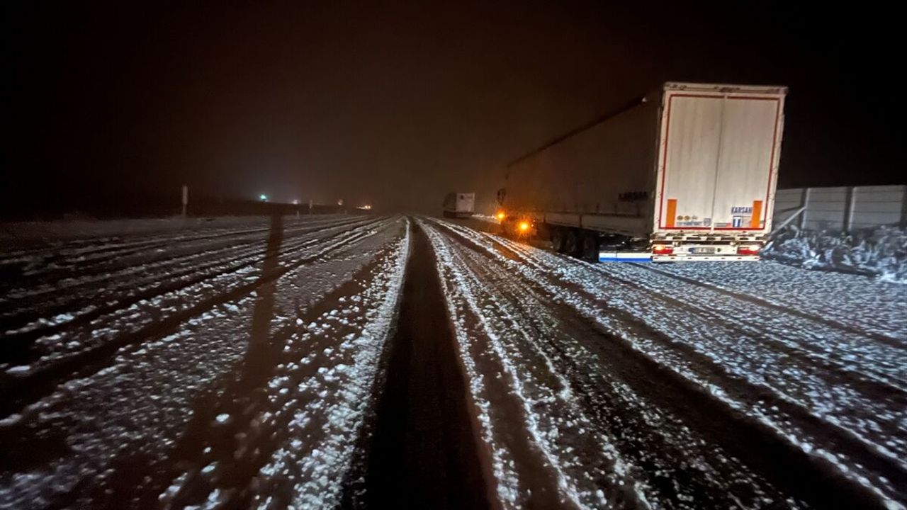 Kar kalınlığının 15 santimetreyi geçtiği bölgede bazı araçlar yolda kaldı, bazıları da yoldan çıkarak bariyerlere çarptı.