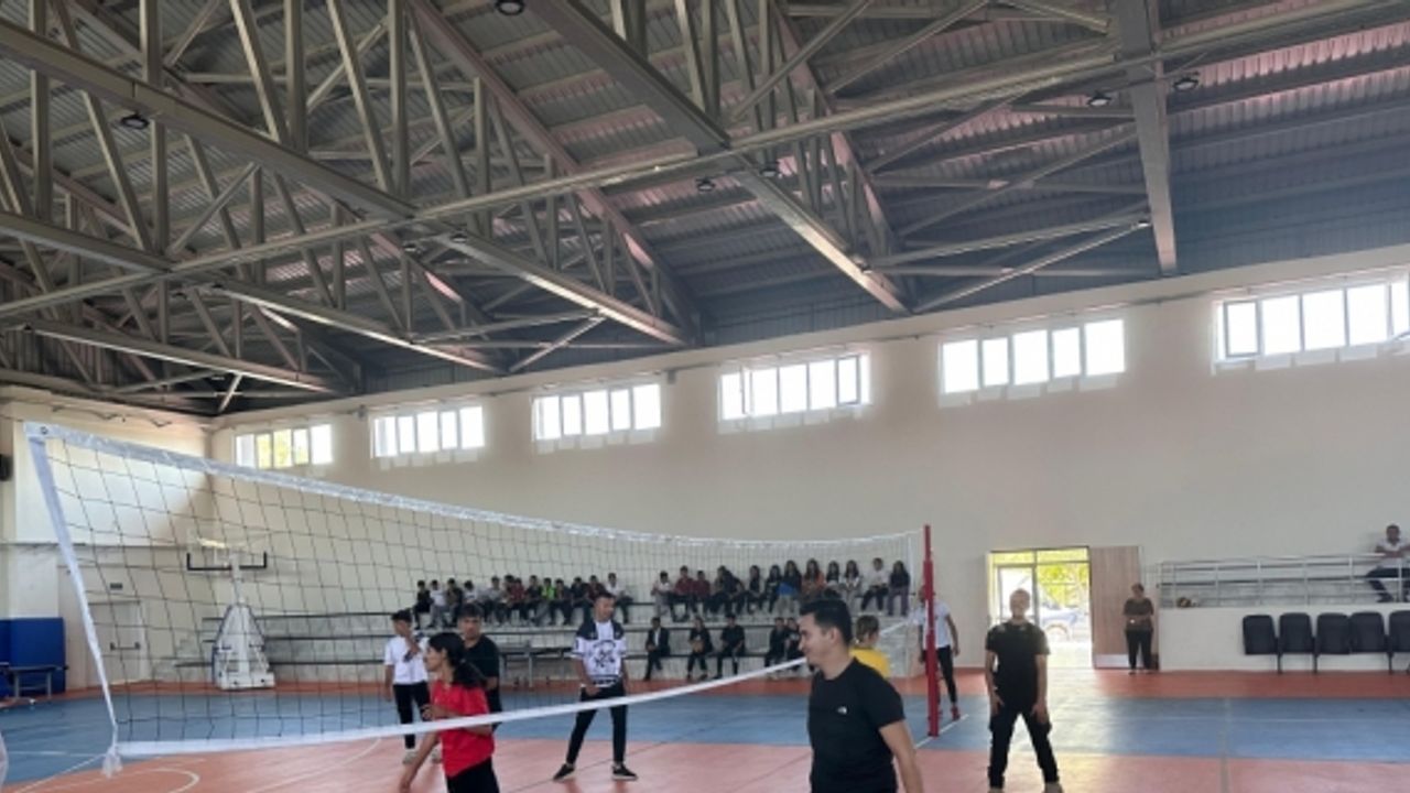Kaymakam Karataş, Arguvan Kapalı Spor Salonunda Şehit Tuncay Göksu Çok Programlı Anadolu Lisesi öğrencileriyle voleybol maçı yaptı.