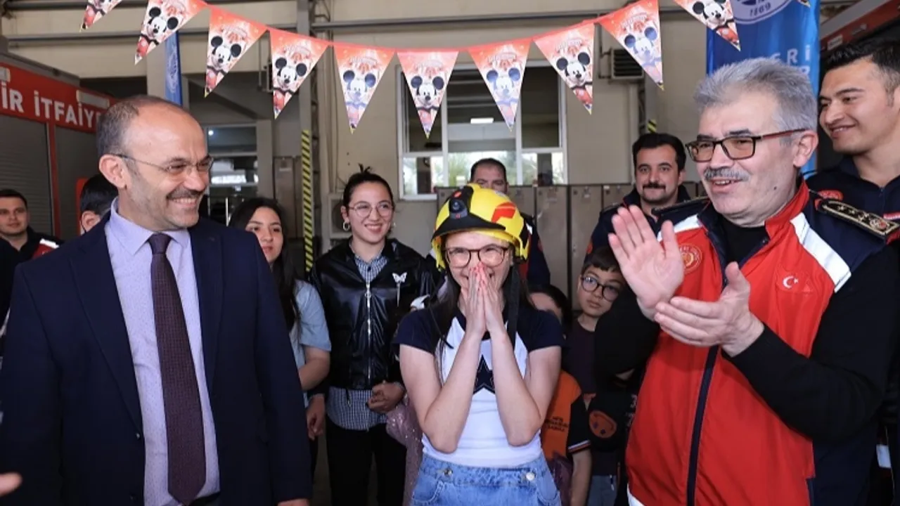 Kayseri Büyükşehir Belediyesi, Engelsiz Yaşam Merkezi öğrencilerinden olan özel gereksinimli Aleyna Başol’a doğum günü dolayısıyla anlamlı bir sürpriz gerçekleştirdi. İtfaiye Daire Başkanlığı’nın evinden alıp, sıcak karşılamalarla kutlanan doğum günü etkinliği, Aleyna’yı hem duygulandırdı hem de çok sevindirdi.KAYSERİ (İGFA) - Kayseri Büyükşehir Belediyesi, Başkan Dr. Memduh Büyükkılıç’ın ‘özel kardeşlerim’ diye nitelendirdiği özel gereksinimli bireylerin hayatına dokunmaya devam ediyor. Bu kapsamda, Büyükşehir Belediyesi, Besime Özderici Engelsiz Yaşam Merkezi öğrencilerinden olan özel gereksinimli Aleyna Başol için unutulmaz bir doğum günü etkinliği düzenledi. İtfaiye Daire Başkanlığı, Aleyna’yı evinden alarak, ona anlamlı bir doğum günü sürprizi hazırladı.