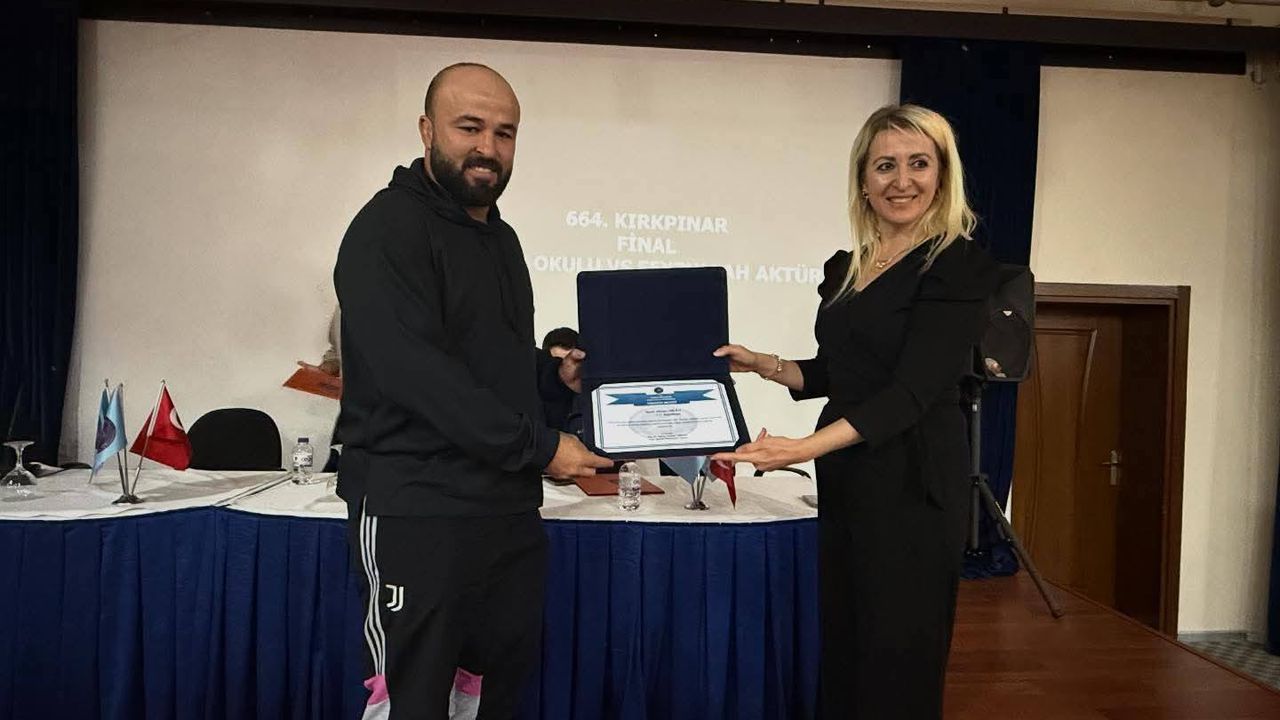 Etkinlikte, organizasyona desteği için Finike Gençlik ve Spor İlçe Müdürü Cihan Ali Özbek'e Akdeniz Üniversitesi Finike Meslek Yüksekokulu Müdürü Doçent Dr. Nefise Yasemin Tezcan tarafından plaket takdim edildi.