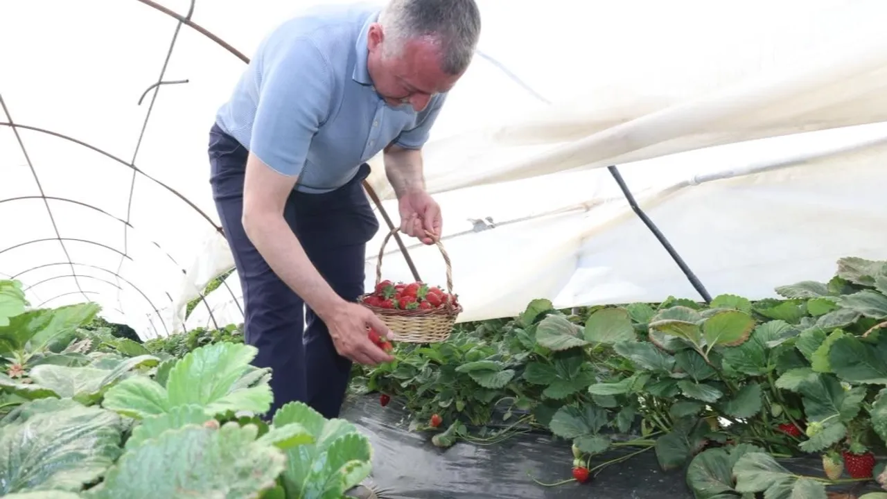 Kocaeli'de Başkan Büyükakın çilek hasadına katıldı