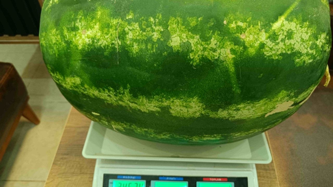 Terazide tartılan karpuzlardan birinin ağırlığı 24 kilo 634 gram geldi.