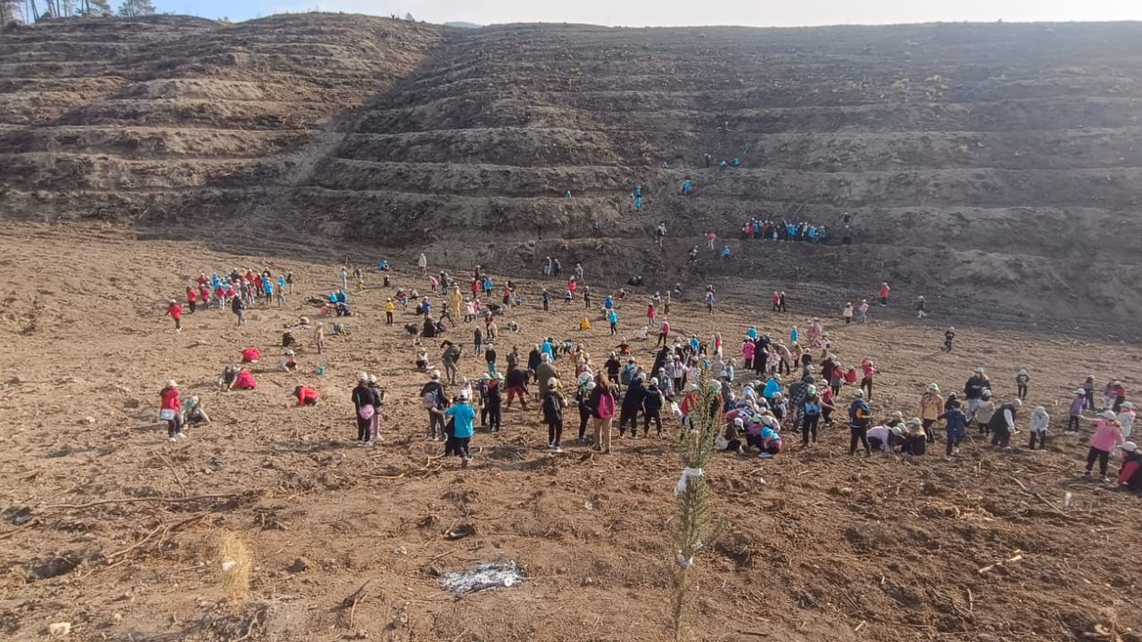 Etkinlikte katılımcılar, yangından zarar gören alana 2 bin 500 fidan dikti.