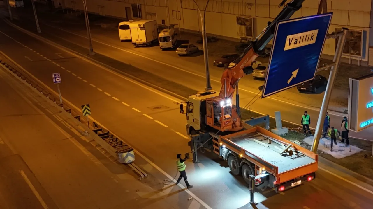 Kent genelinde hayata geçirdiği kavşak, tünel, köprü ve üst geçit projeleriyle ulaşımı kolaylaştıran Kocaeli Büyükşehir Belediyesi, işaret ve yönlendirme levhalarıyla da yayaların sağlıklı ve güvenli bir şekilde seyahatlerine olanak sağlıyor. Bu kapsamda Ulaşım Dairesi Başkanlığı ekipleri, gece saatlerinde Kocaeli’nin farklı noktalarında L tipi yönlendirme levhası çalışması gerçekleştiriyor.