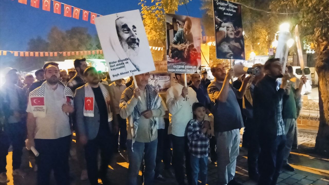 Eski İl Milli Eğitim Müdürlüğü binası önünde toplanan vatandaşlar, 'Hamas'a selam, direnişe devam', 'Boyun eğme işgale, gideceğiz Gazze'ye' sloganları atarak Kernek Meydanı'na kadar yürüdü.