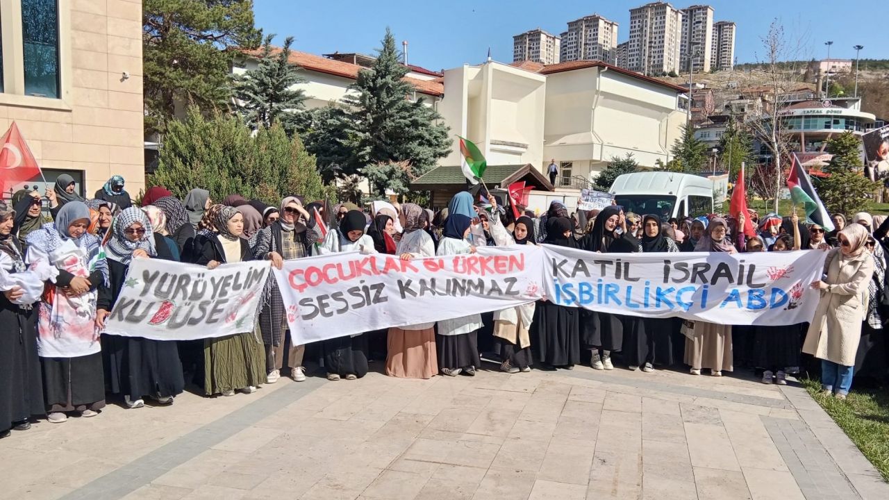 Aksüt, "Bugün kalbimiz bombalanıyor, susturuluyor. Ama biz bu sessizliğe razı değiliz. Biz susmayacağız çünkü biz biliyoruz ki bir çocuğun çığlığı, bir annenin gözyaşı bir ümmetin vicdanını sarsmaya yeter. Ey ümmet, artık suskunluğunuzu bozun. Dua yetmez, direniş gerekir. Gözyaşı yetmez, ayağa kalkmak gerekir." diye konuştu.