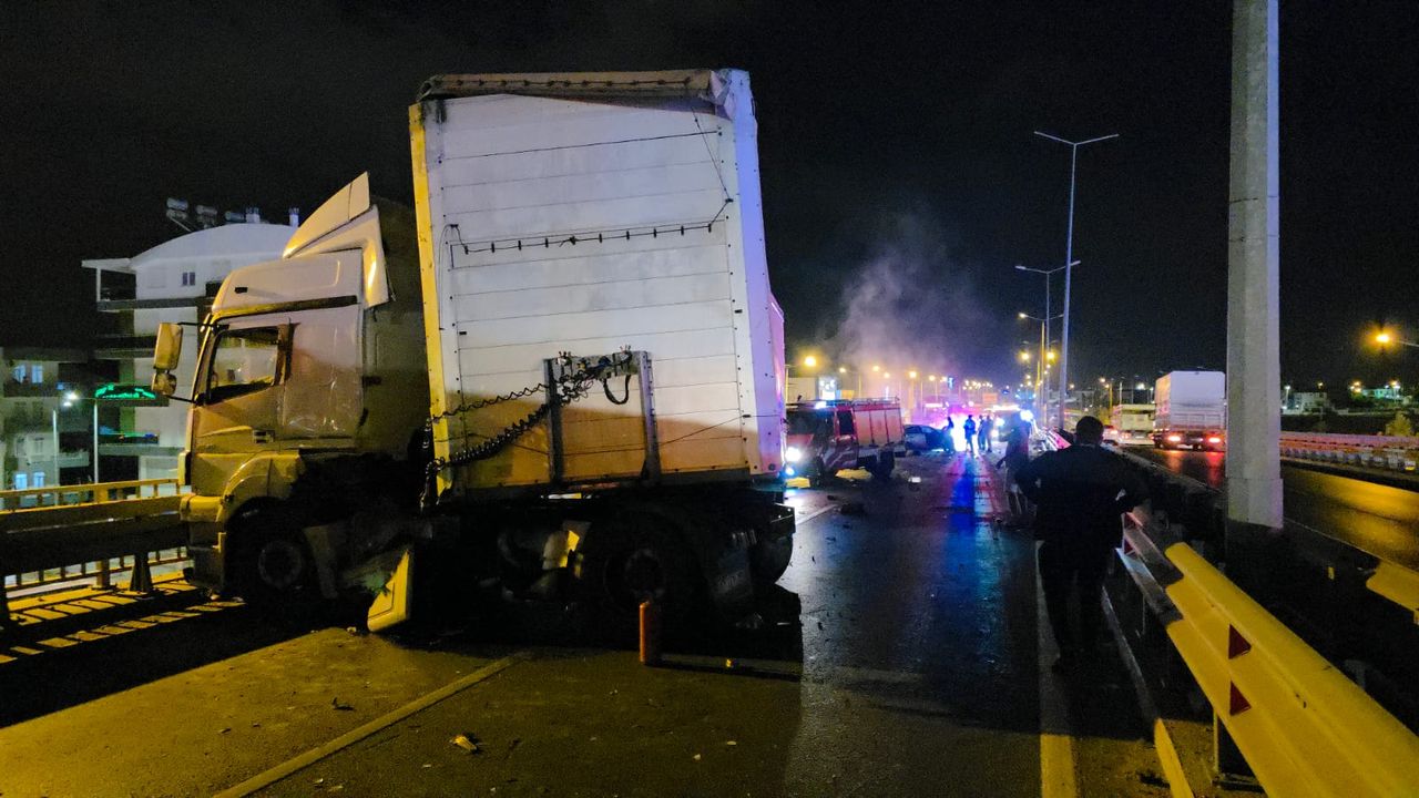 Otomobil sürücüsü Ercan Ş., tırla bariyerlerin arasına sıkışıp, dönerek sürüklendiğini iddia etti.