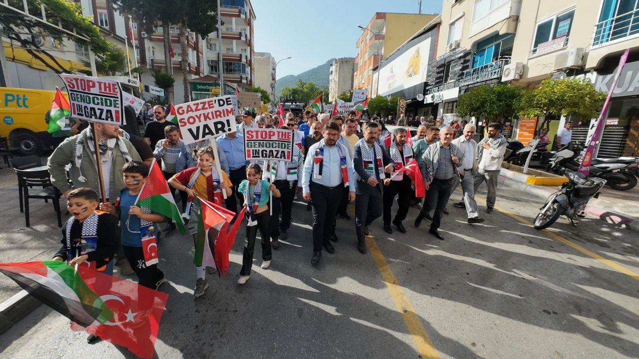 MERSİN (AA) - Mersin'in Anamur ilçesinde Filistin'e destek için gerçekleştirilen yürüyüşte İsrail'in saldırıları protesto edildi.