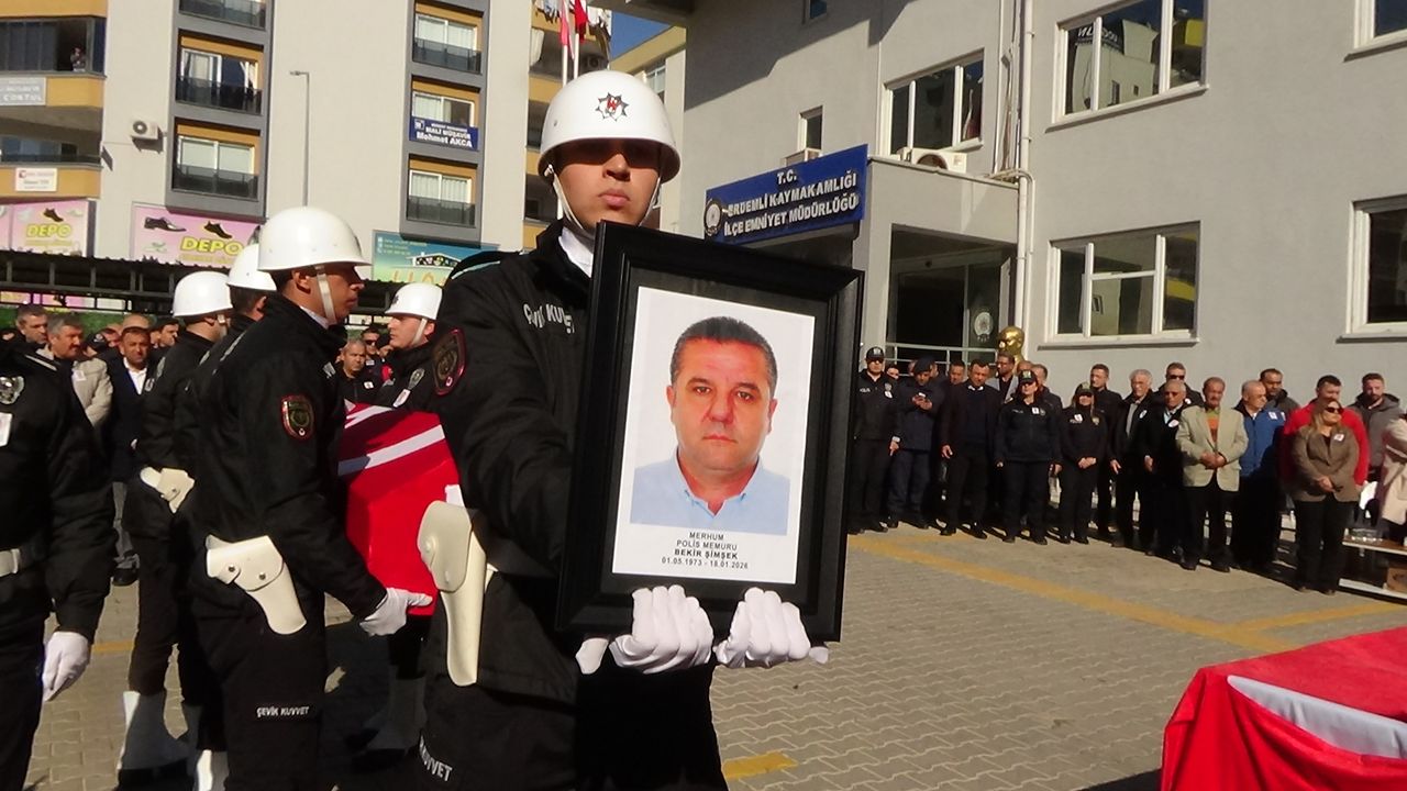 Şimşek'in cenazesi, hastane morgundaki işlemlerin ardından Erdemli İlçe Emniyet Müdürlüğü bahçesine götürüldü.