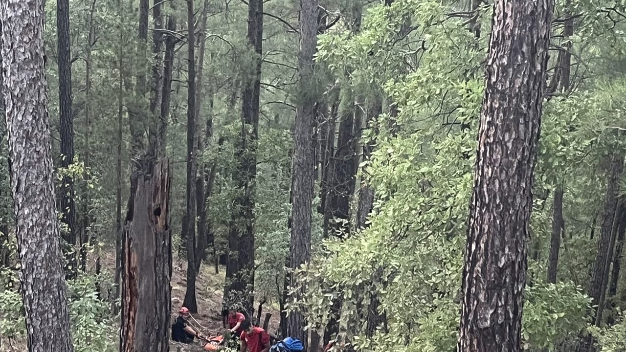 İtfaiye ekipleri yaklaşık 1 kilometrelik dik ve kayalık araziye kurulan ipli erişim tekniğiyle yaralının bulunduğu alana ulaştı.