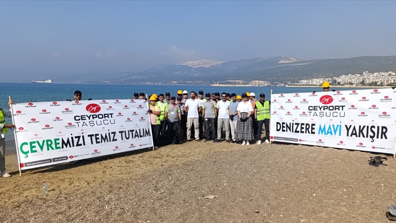 MERSİN (AA) - Mersin'in Silifke ilçesindeki Ceyport Taşucu Limanı'nda çalışan işçiler sahil temizliği yaptı.