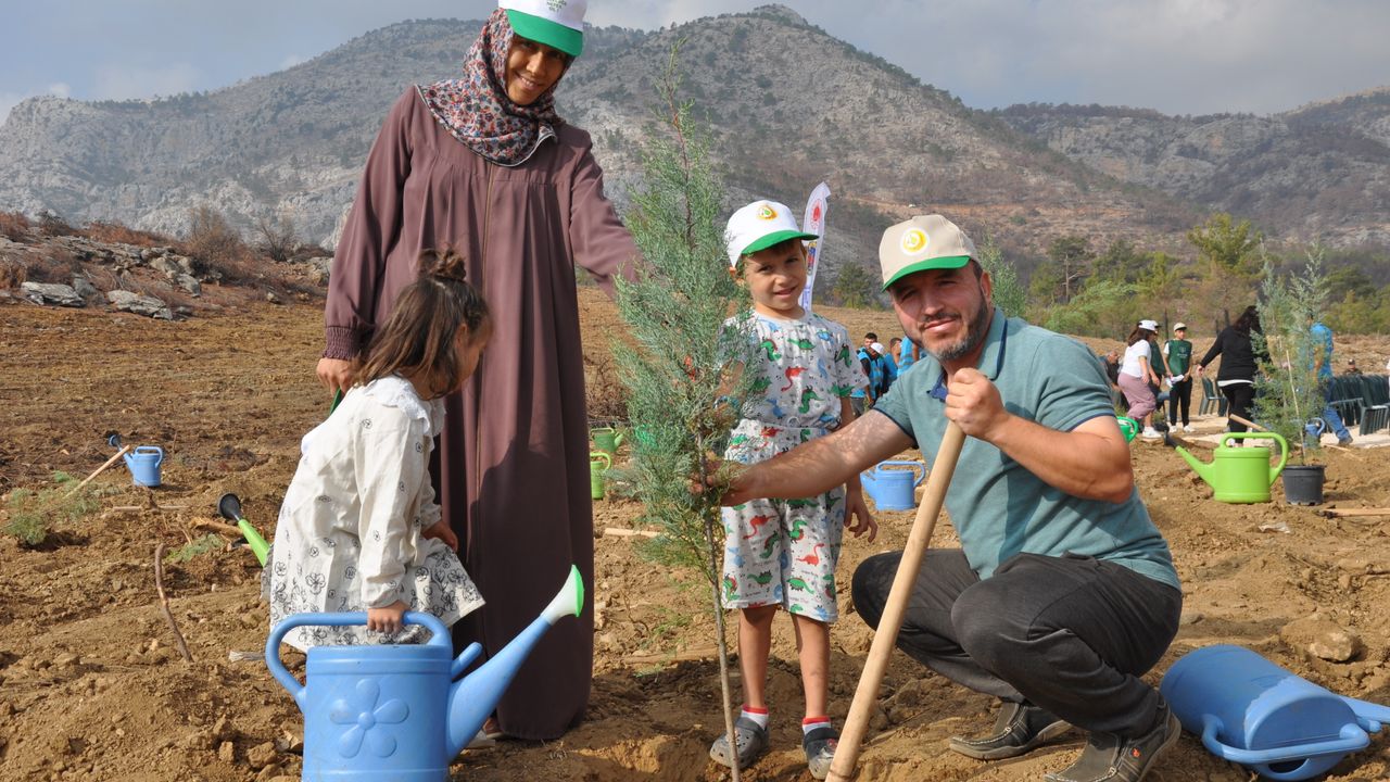Silifke Kaymakamlığı öncülüğünde '11 Kasım Milli Ağaçlandırma Günü' dolayısıyla 13 Ağustos'taki yangında zarar gören bölgelerden Akdere Mahallesi'nde etkinlik düzenlendi.